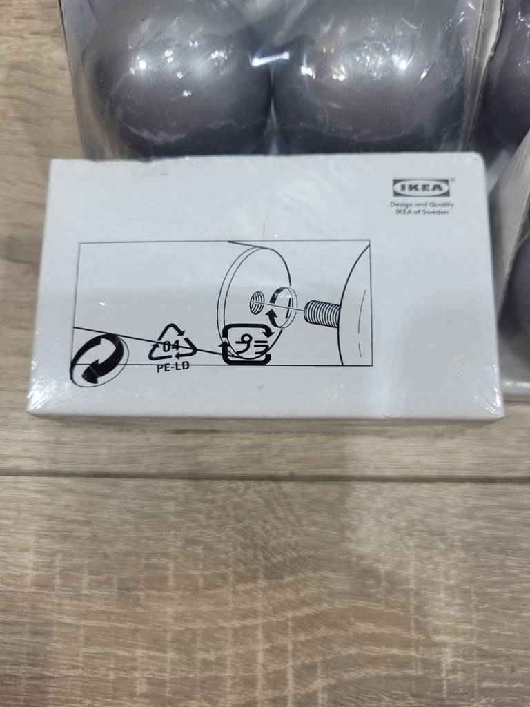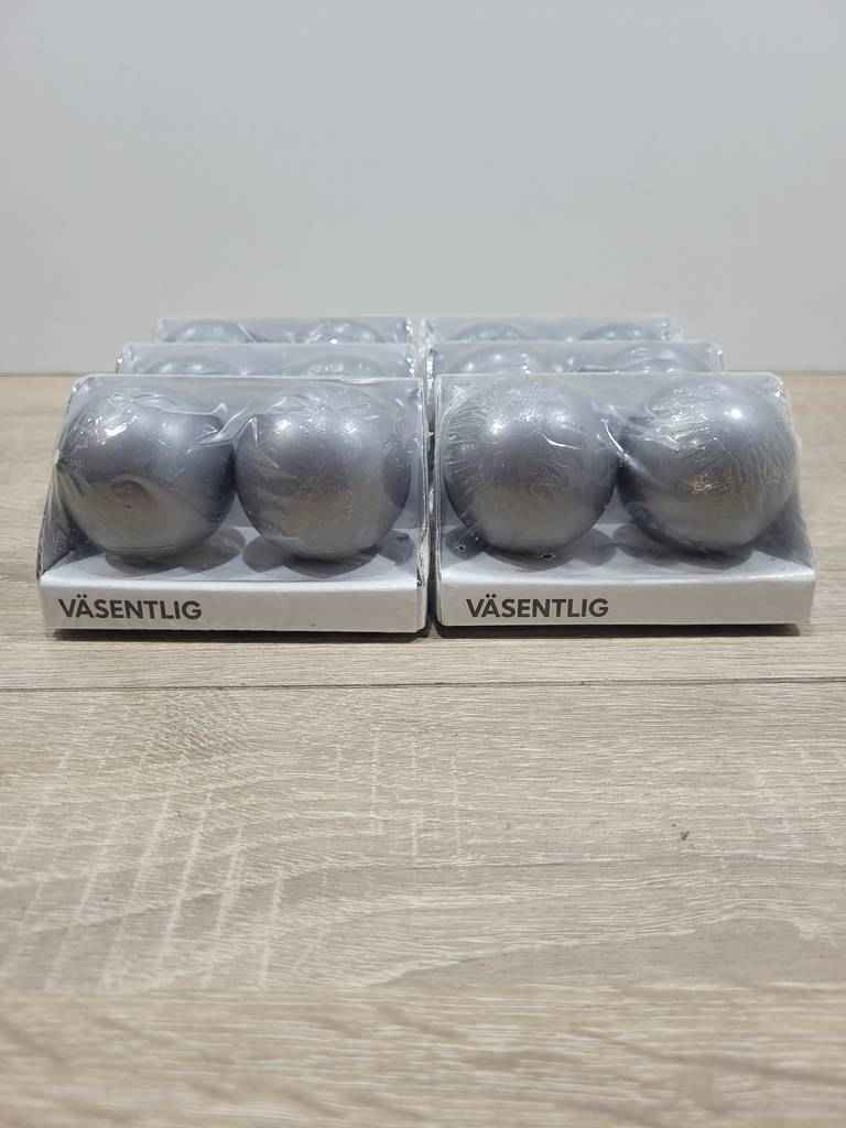 Conjunto de seis paquetes de terminales de barra para cortina en forma cilíndrica y de color gris plateado de la famosa tienda de muebles sueca Ikea. Se trata de seis paquetes denominados Vasentlig que contienen dos bolas cada uno ideales para poner en la terminación de la barra de una cortina en tu salón comedor. Como se puede observar en las fotografías se encuentran completamente nuevos a estrenar.