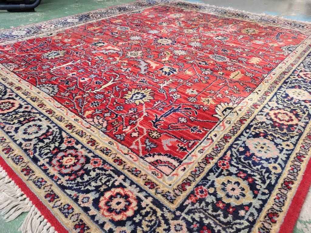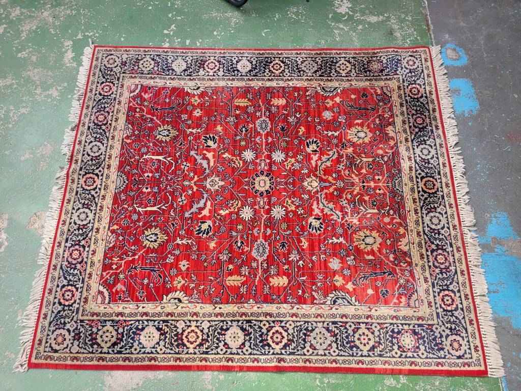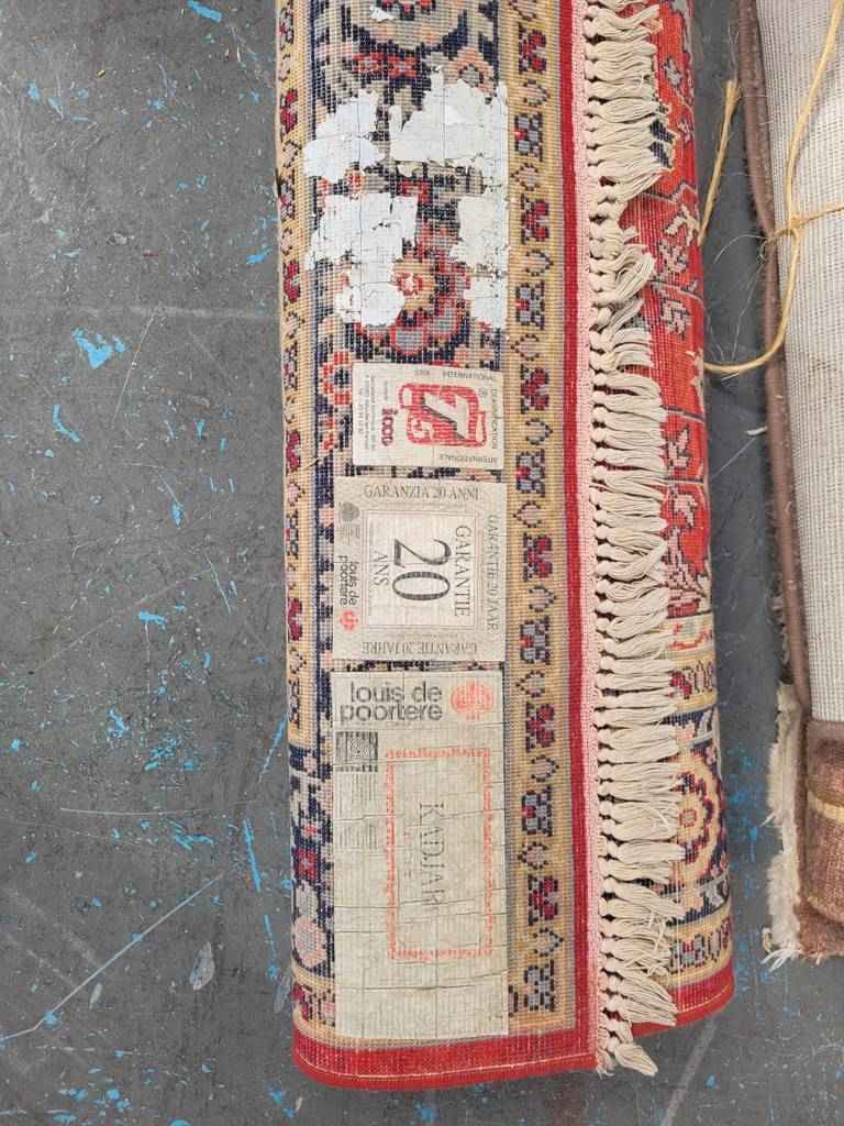 Alfombra de la marca “Louis de Poortere” procedente de Kadjar. Se trata de una alfombra muy elegante con bonitos decorados en su parte central que están sobre un fondo rojo. Su cenefa en los laterales la hace resaltar. Es ideal para darle un toque distintivo y elegante a nuestro salón comedor. Como podemos observar en las fotografías se encuentra en buenas condiciones.