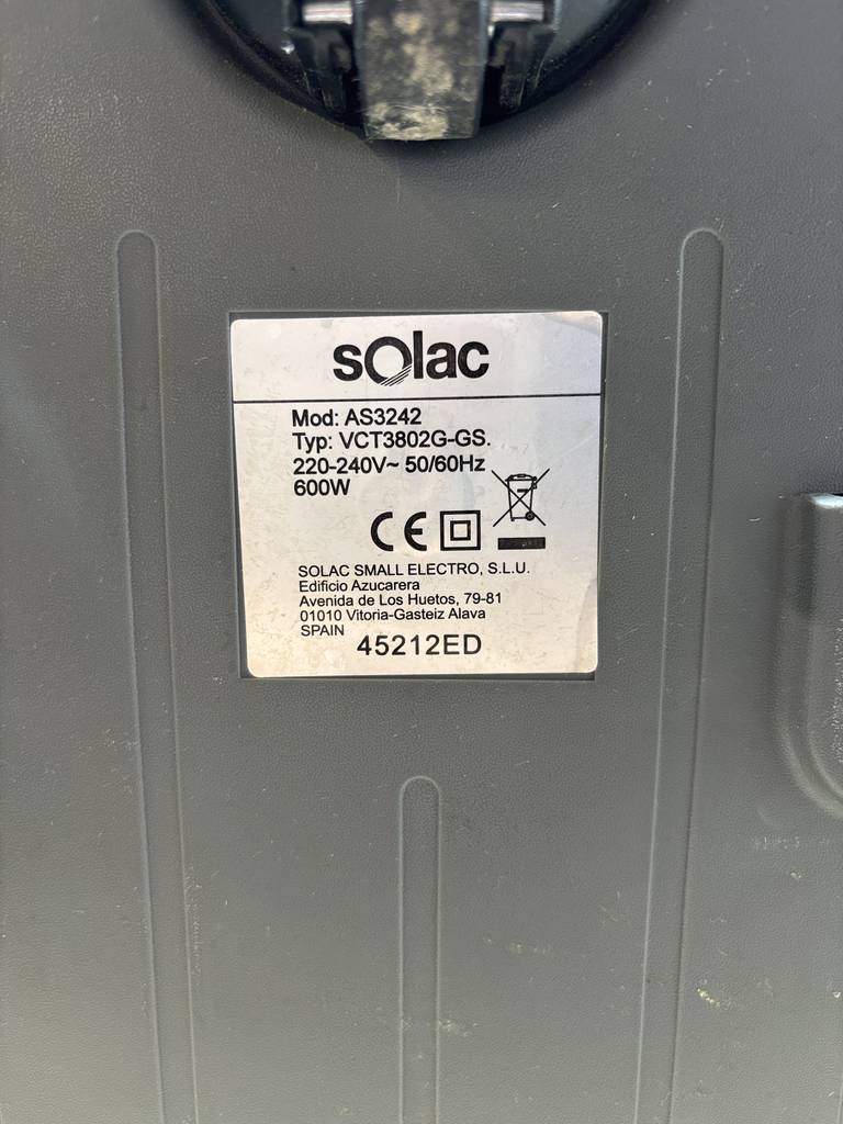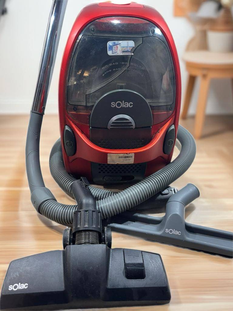 Ref. ✅ O8796 Aspiradora Solac, ideal para una limpieza profunda y sin complicaciones.Olvídate de comprar y cambiar bolsas de polvo. Cuenta con un depósito fácil de vaciar y limpiar. Utiliza la fuerza centrífuga para separar eficazmente la suciedad del aire, manteniendo una potencia de succión óptima y constante sin obstrucciones en los filtros. Está equipada con filtro HEPA (High Efficiency Particulate Air) antialérgico, que captura las partículas de polvo, bacterias y alérgenos más diminutos, devolviendo aire limpio al ambiente. Ideal para personas con alergias o mascotas. Lista para darle una segunda oportunidad.