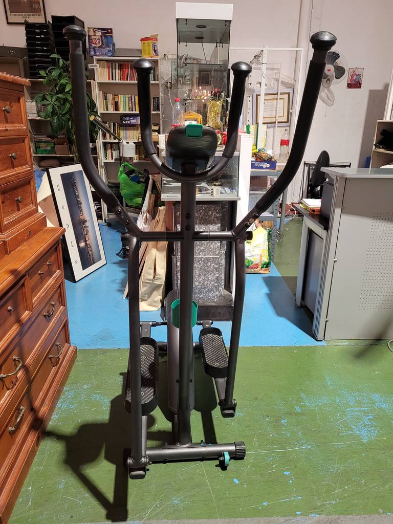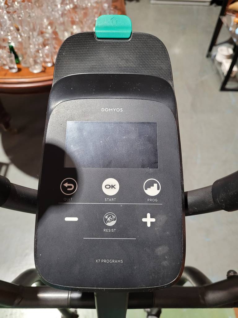 Ref. ✅ O9000 Esta es una bicicleta elíptica Domyos EL 120, ideal para entrenamientos cardiovasculares en casa. Perfecta para quienes quieren tonificar todo el cuerpo quemando calorías sin impacto en las articulaciones. Cuenta con 15 niveles de resistencia motorizada para adaptar la intensidad de tus entrenamientos a tu nivel y objetivos. Su diseño compacto y sus ruedas de transporte integradas facilitan guardarla en cualquier rincón de la casa. Cuenta con sensores de frecuencia cardíaca en el manillar central y pedales antideslizantes para una sesión segura y cómoda.