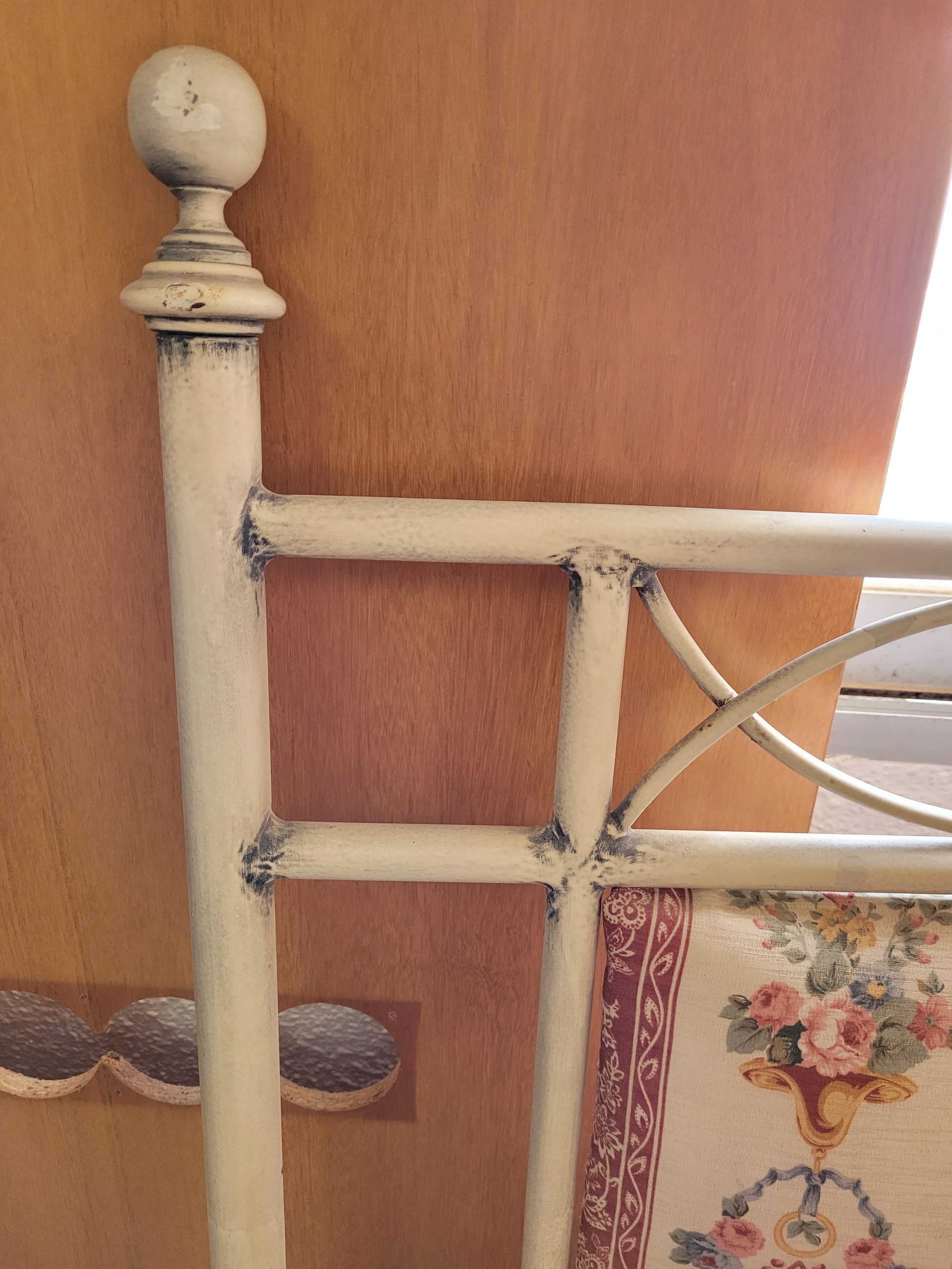 Ref. ✅ O9384 Este es un cabecero clásico y elegante en forja lacada color crema/marfil con detalles de esferas decorativas en los remates. Incluye un panel central tapizado con un patrón floral de estilo tradicional y cenefas verticales en tonos granate y beige, que aporta calidez y comodidad al dormitorio. Fabricado en hierro forjado resistente y duradero. Su diseño ligero permite una fácil colocación y combina perfectamente con decoraciones rústicas, clásicas o románticas. Se encuentra en perfecto estado y listo para darle una segunda oportunidad.