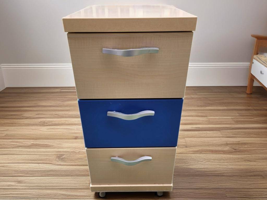 Ref. ✅ O9269 Esta cajonera versátil es ideal para oficinas, dormitorios infantiles o estudios creativos. Su diseño compacto y funcional permite aprovechar al máximo cualquier rincón. Cuenta con 3 cajones espaciosos. El cajón central en azul vibrante resalta sobre el acabado en madera clara, ofreciendo un estilo moderno y juvenil. Incluye ruedas resistentes en la base, lo que facilita moverla para limpiar o reorganizar tu habitación sin esfuerzo. Estructura robusta con tiradores ergonómicos en acabado plateado mate. Muy bien cuidada y lista para darle una segunda oportunidad.