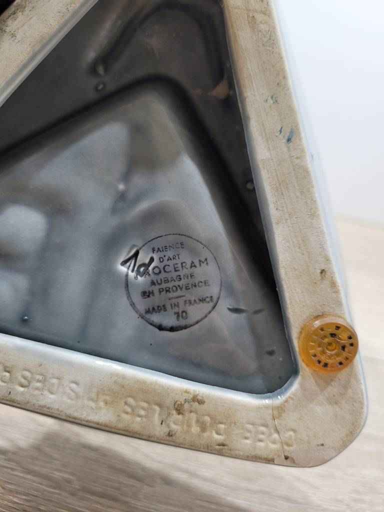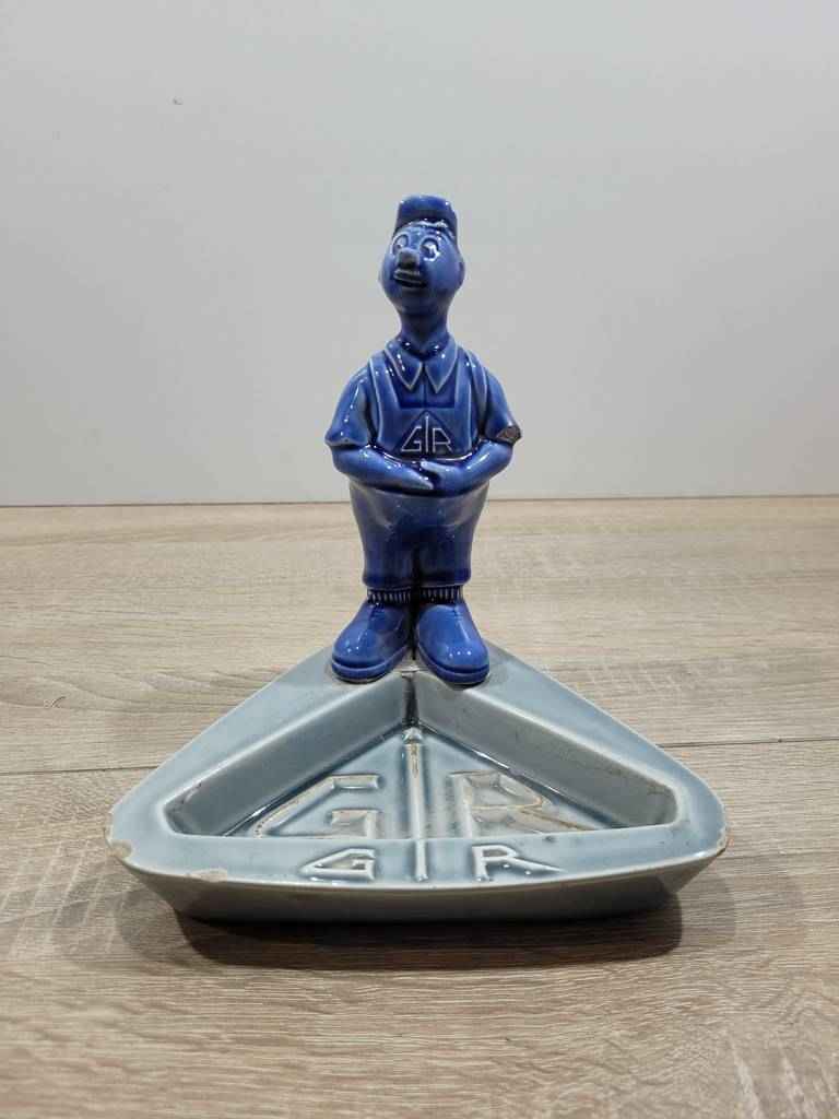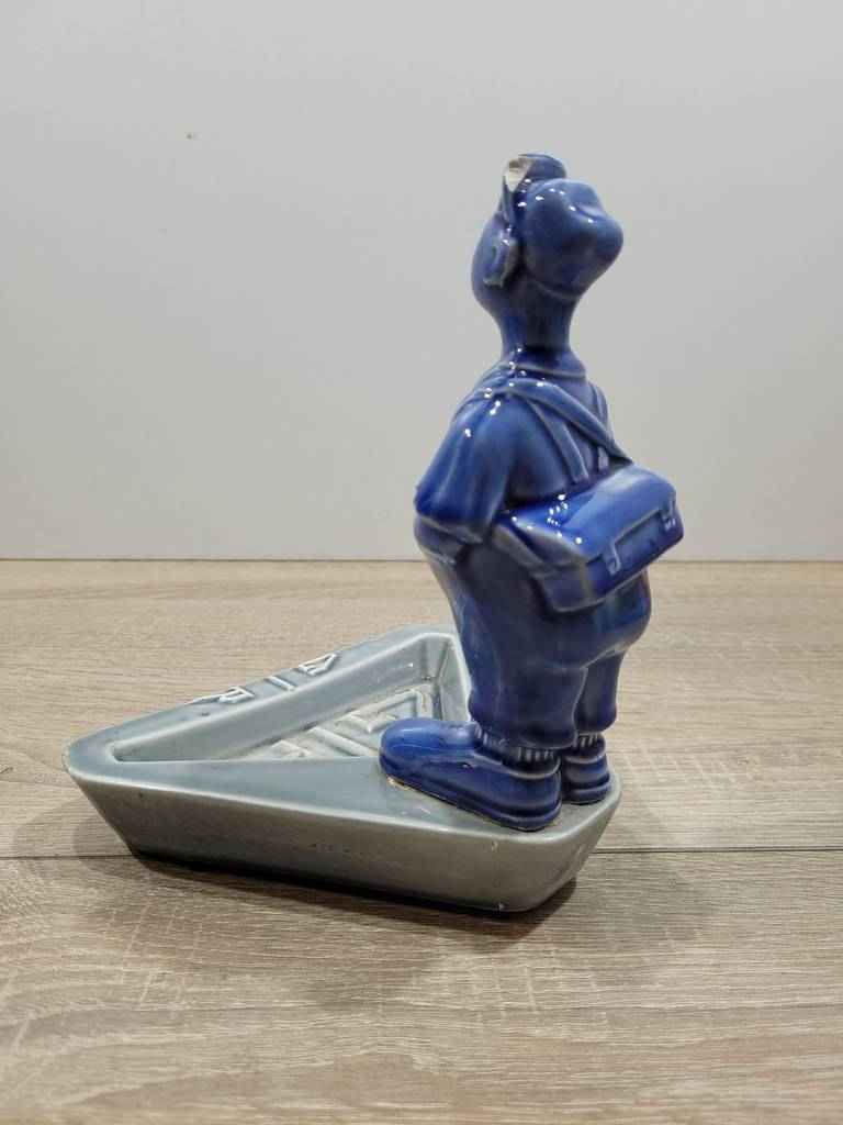 Cenicero fabricado en cerámica de estilo vintage que tiene la imagen de un fontanero vigilante y con el nombre de la empresa GIR. Se trata de un cenicero fabricado en los años sesenta por la famosa empresa de accesorios francesa. Es ideal para coleccionistas o para decorar cualquier estancia del hogar. Como se puede observar en las fotografías se encuentra en buenas condiciones de conservación.