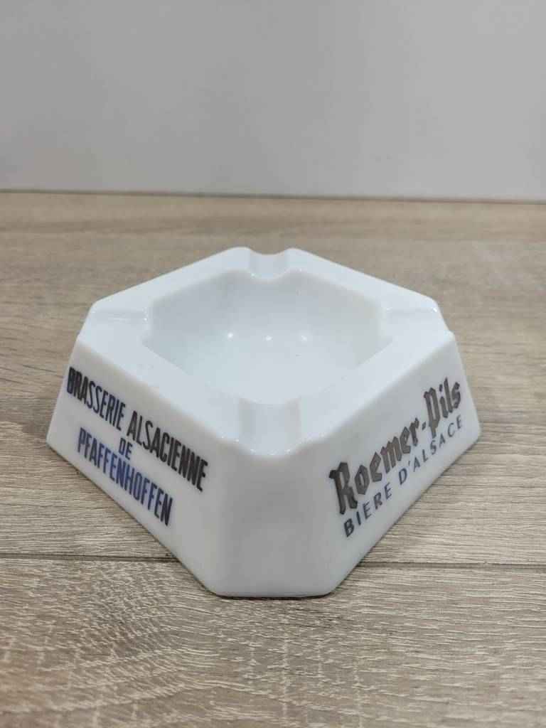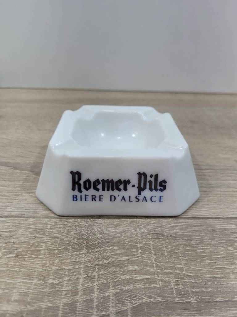 Cenicero de cerámica de estilo vintage y de la marca de bebidas Roemer-Pils de forma cuadrangular y de color blanco. Se trata de un elemento de colección vintage ideal para coleccionistas, aunque también puede ser utilizado habitualmente. Ha sido realizado con materiales de buena calidad y duraderos. Como podemos observar en las fotografías se encuentra en buenas condiciones.