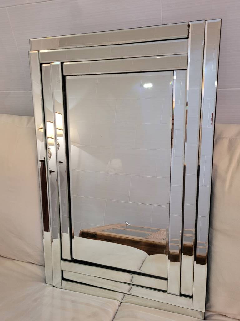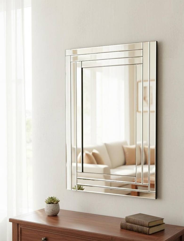 Ref. ✅ O8899 Este es un espejo de pared que aportará estilo y carácter a cualquier habitación, desde la sala de estar hasta el dormitorio o el baño. Es una pieza decorativa moderna y elegante, diseñada para reflejar la luz y dar una sensación de amplitud al espacio. Rectangular con un moderno y sofisticado diseño de marco de vidrio con triple borde biselado. Se puede colgar tanto en orientación vertical como horizontal para adaptarse a diferentes espacios. Crea un punto focal cautivador, añadiendo profundidad y un toque de glamour a la decoración de interiores.