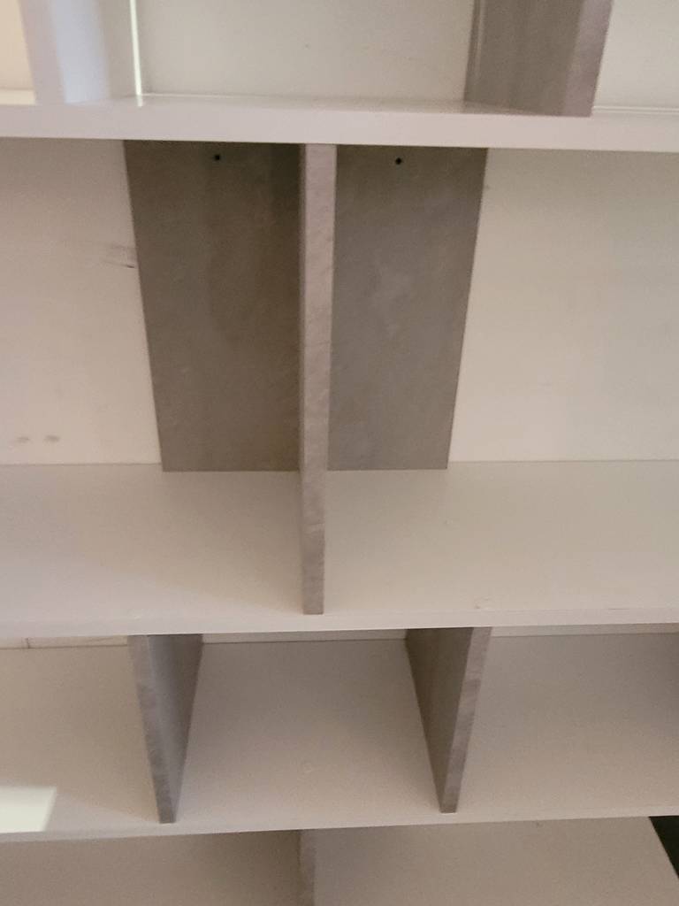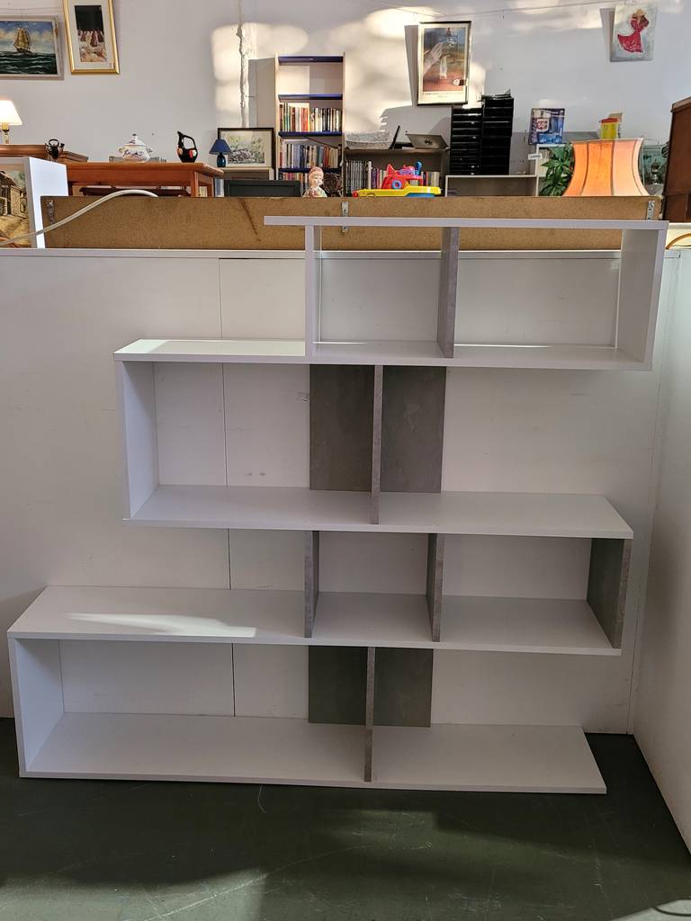 Ref. ✅ O8901 Se vende estantería/librería geométrica moderna. Presenta un diseño asimétrico y contemporáneo con estantes y compartimentos de distintos tamaños, ideal para organizar libros, plantas u objetos decorativos. Acabado en tonos blanco y gris que combinan fácilmente con múltiples estilos de decoración. Ofrece una solución de almacenamiento versátil y funcional, perfecta para maximizar el espacio en salones, comedores, oficinas o dormitorios. Se encuentra en perfecto estado y listo para darle una segunda oportunidad.