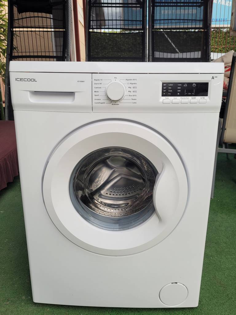 Ref. ✅ O8994 Esta lavadora Icecool de carga frontal es ideal para quienes buscan eficiencia y funcionalidad a un precio competitivo. Su diseño compacto la hace perfecta para espacios reducidos, y cuenta con características prácticas que facilitan el lavado diario. Capacidad de Carga: 6 kg. Velocidad de Centrifugado: 1000 rpm. Eficiencia Energética: Clasificación energética D (equivalente a la antigua A++). Incluye 15 programas esenciales para cubrir todas las necesidades, como programas rápidos de 15 minutos, diarios, y para algodón. Dispone de bloqueo infantil y sistema antidesbordamiento.