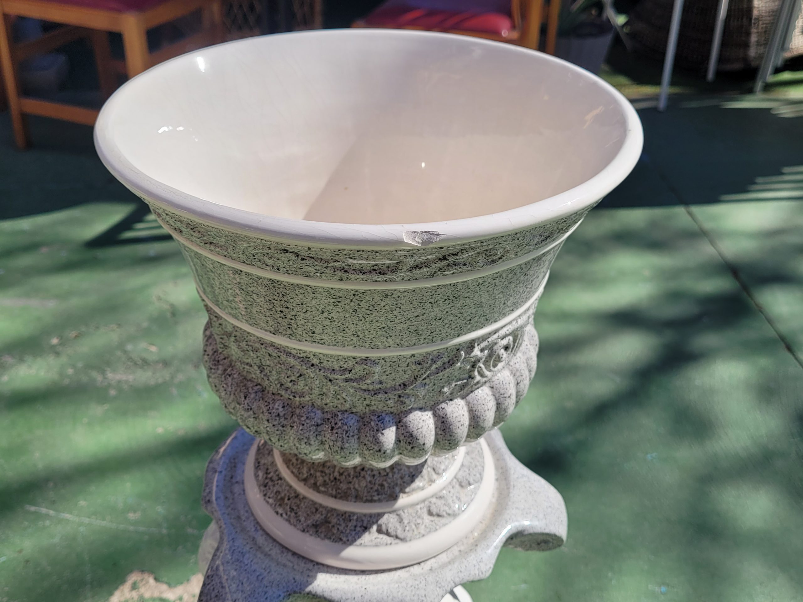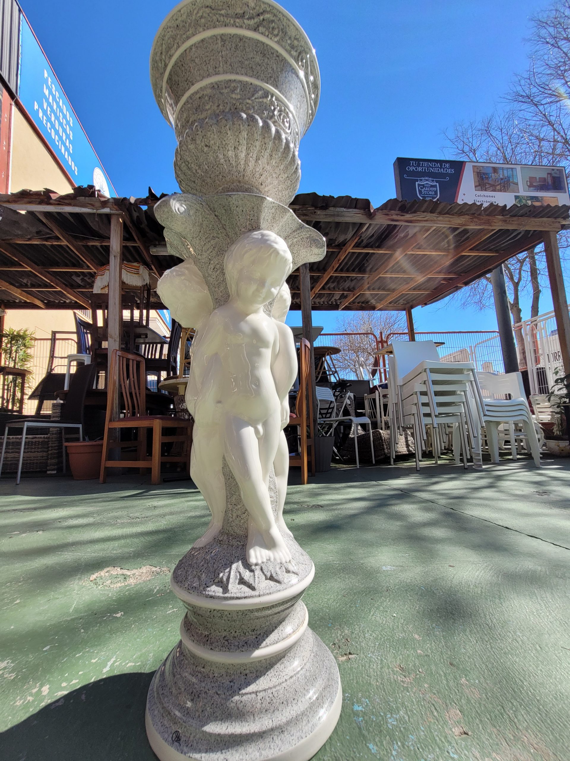 Ref. ✅ O9132 Esta pieza es un conjunto decorativo de estilo clásico que combina una copa o macetero sobre un pedestal de querubines, ideal para realzar la decoración de un jardín, terraza o entrada. Elegante conjunto ornamental compuesto por una copa superior con acabado texturizado y un pedestal decorado con figuras de ángeles o querubines en relieve. Suele estar fabricado en piedra artificial, hormigón o resina craquelada, materiales resistentes para su exposición en exteriores. Diseño neoclásico que aporta un toque sofisticado y atemporal a cualquier espacio.