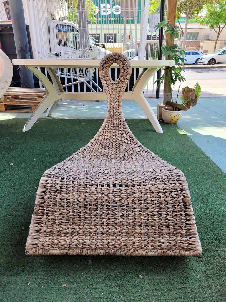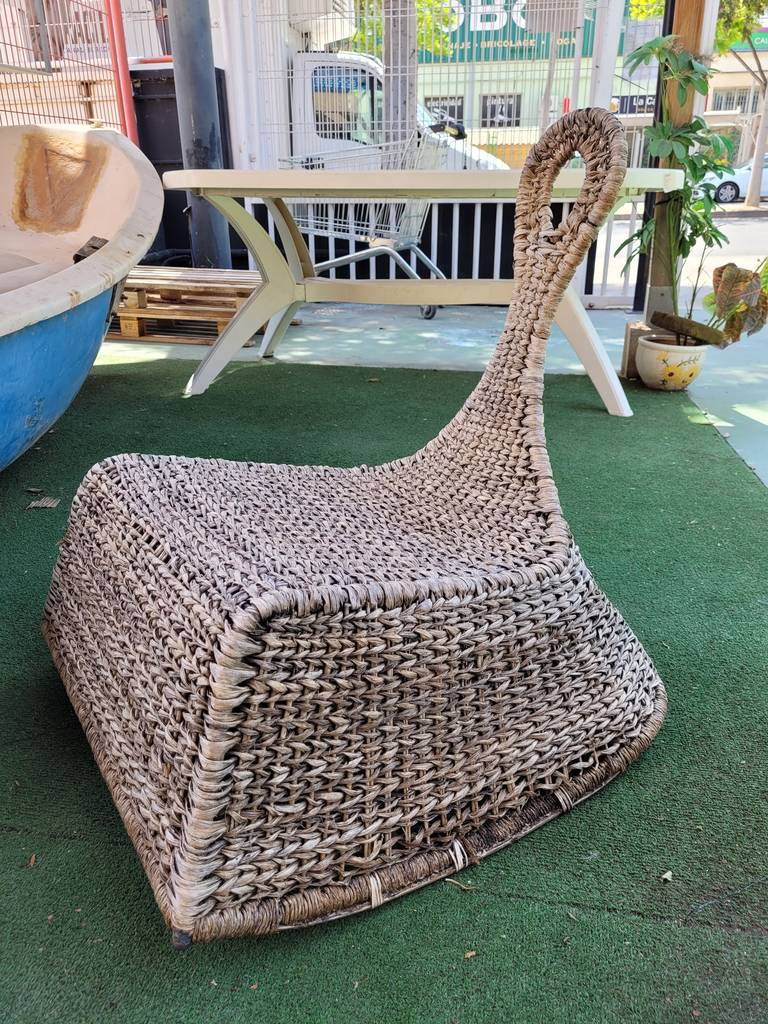 Mecedora de mimbre de la reconocida tienda de muebles sueca Ikea. Se trata de una mecedora fabricada en mimbre de color marrón que está formada por un asiento amplio y confortable y un respaldo delgado. Es una mecedora ideal tanto para el interior del hogar como para el exterior. Como se puede observar en las fotografías se encuentra en buenas condiciones.