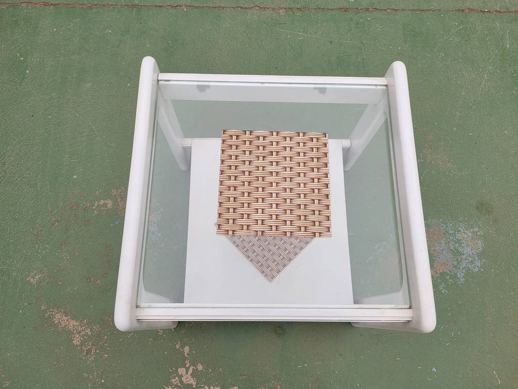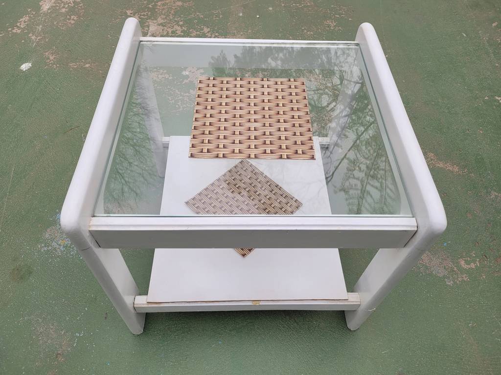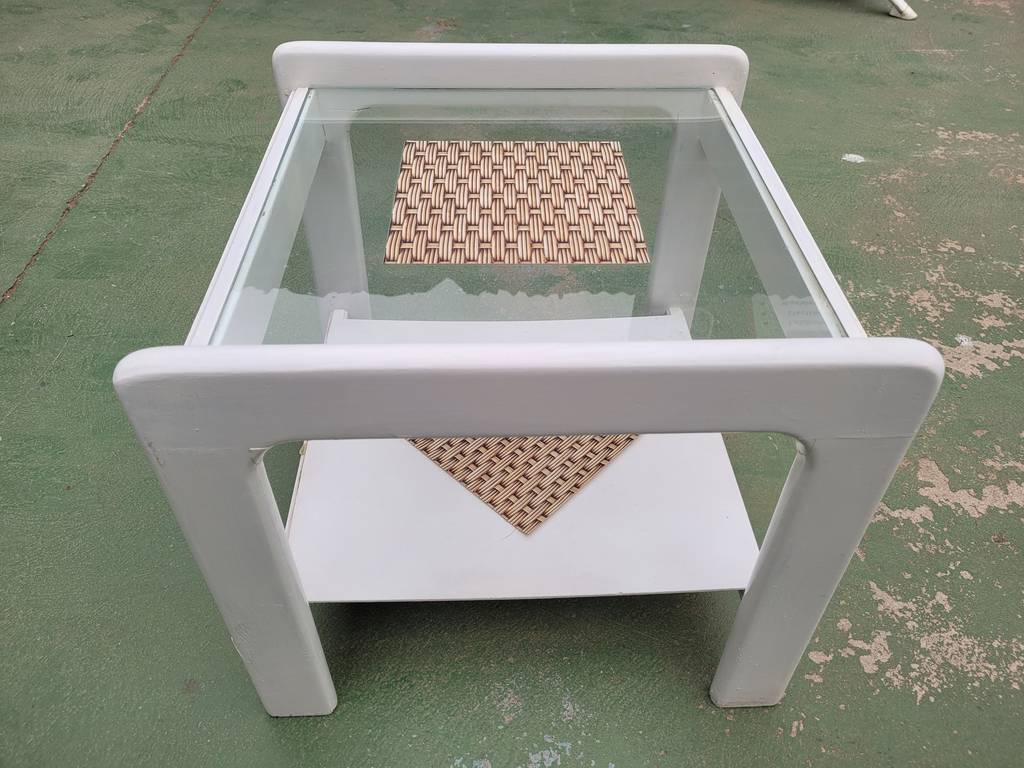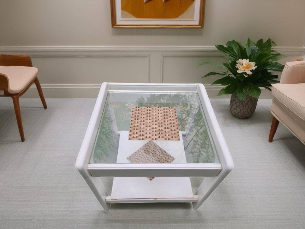 Ref. ✅ O9207 Mesa Auxiliar de Madera Blanca con Tapa de Cristal y Estante Inferior. Estructura de madera lacada en blanco y superficie de cristal transparente. Cuenta con dos niveles; una amplia superficie superior de cristal y un estante inferior sólido, perfecto para organizar libros, revistas o mandos. Su diseño limpio en color blanco combina fácilmente con cualquier tipo de decoración. El cristal superior ayuda a no sobrecargar visualmente el espacio, ideal para habitaciones pequeñas. Incluye detalles textiles tipo esterilla que le aportan una textura natural y artesanal.