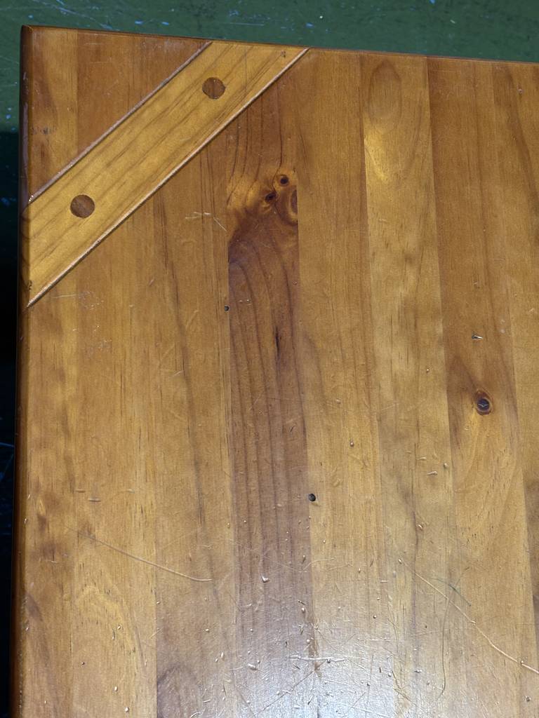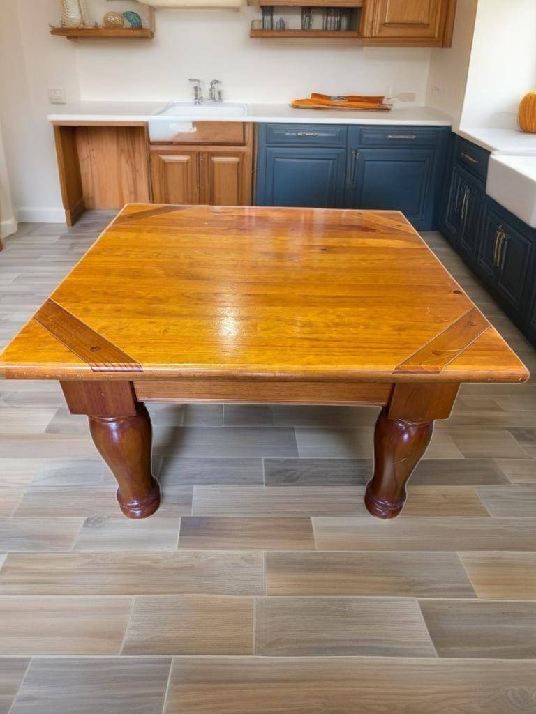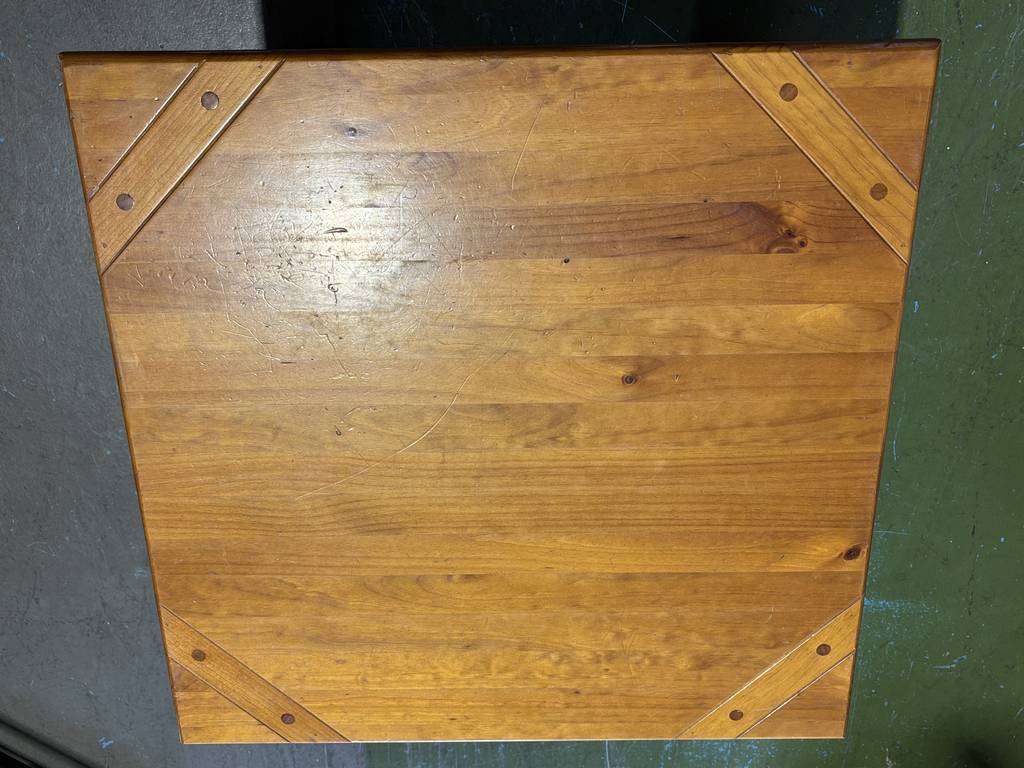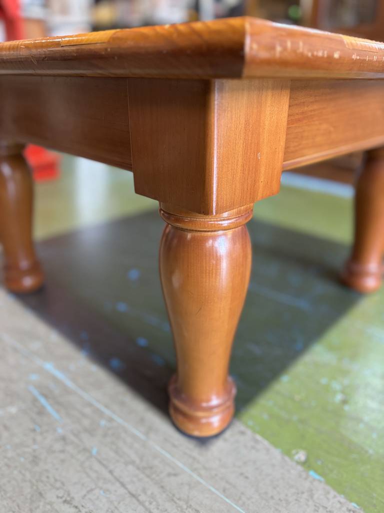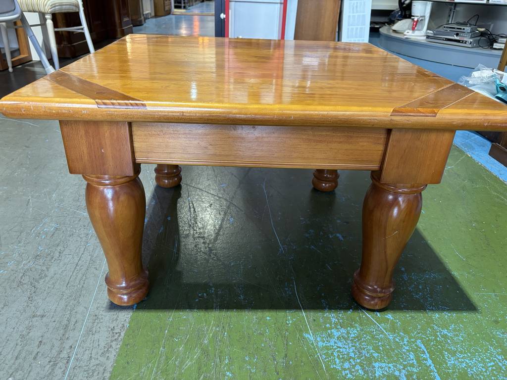 Ref. ✅ O8797 Mesa de centro de madera maciza, conocida por su durabilidad y resistencia. Presenta un diseño clásico y elegante, su tablero cuadrado con los bordes ligeramente redondeados y el detalle de las vetas de la madera visibles le aporta un estilo natural. Destacan sus patas torneadas robustas y decorativas. Este método tradicional de torneado le confiere un encanto atemporal que nunca pasa de moda. Cuenta con un acabado pulido y brillante en un cálido tono miel/natural, que resalta la belleza de la madera. Lista para darle una segunda oportunidad.
