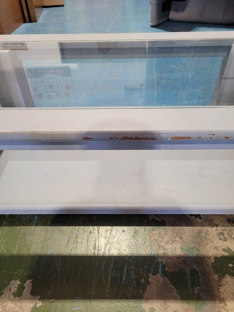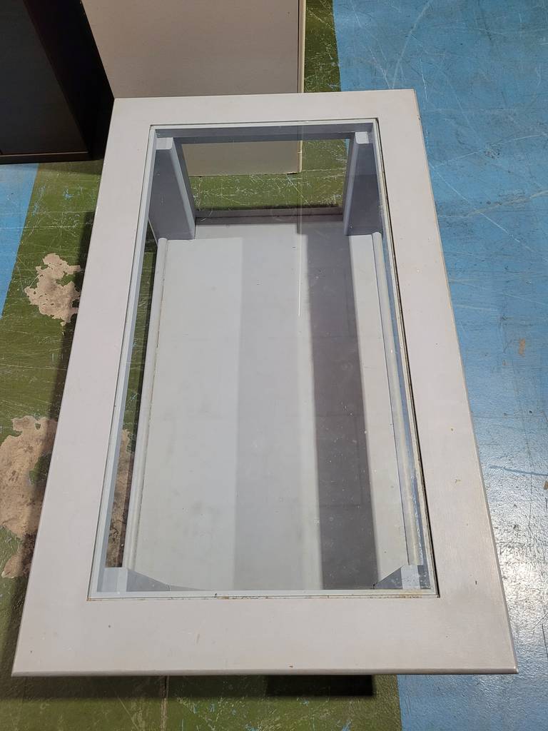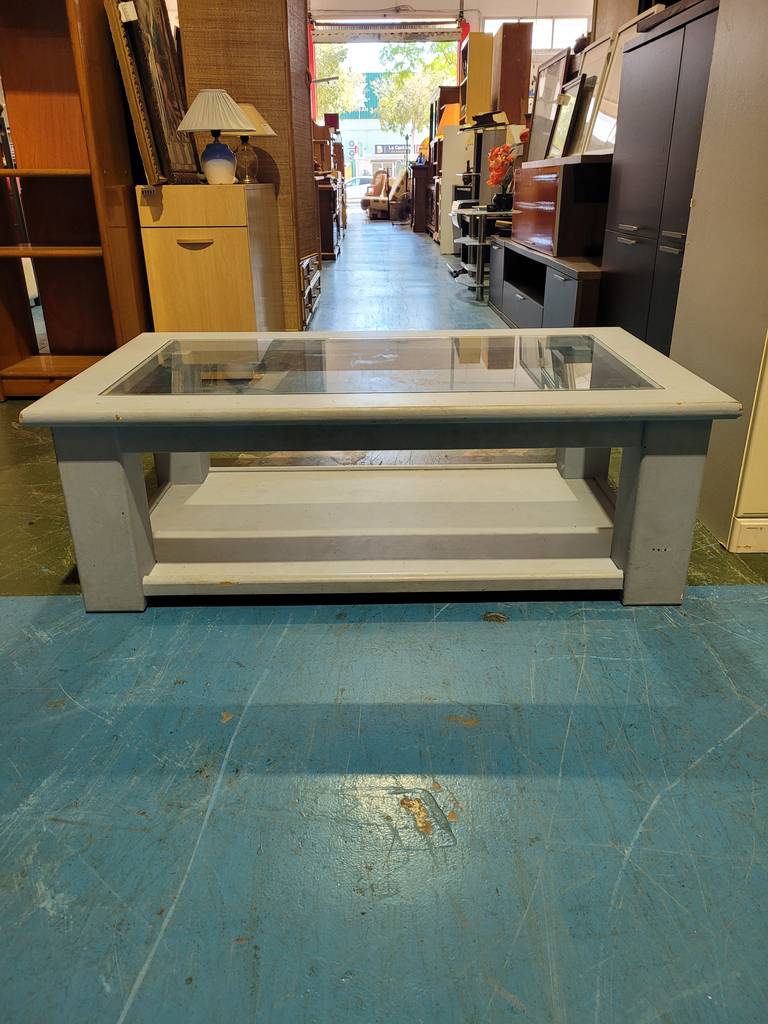 Mesa de centro con forma rectangular que ha sido fabricada con madera de buena calidad y robusta. Se compone de un cristal transparente en la parte superior y de un habitáculo inferior para dejar revistas, por ejemplo. Es ideal para colocar en un salón comedor frente al sofá. Como podemos observar en las fotografías presenta ligeros desperfectos.
