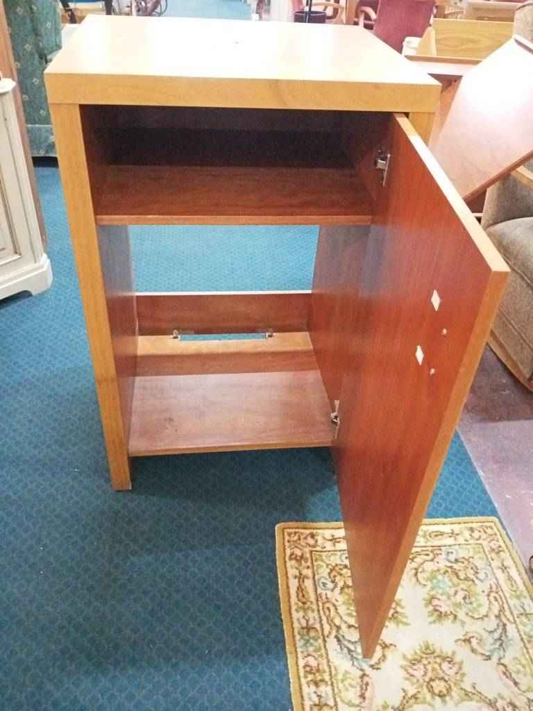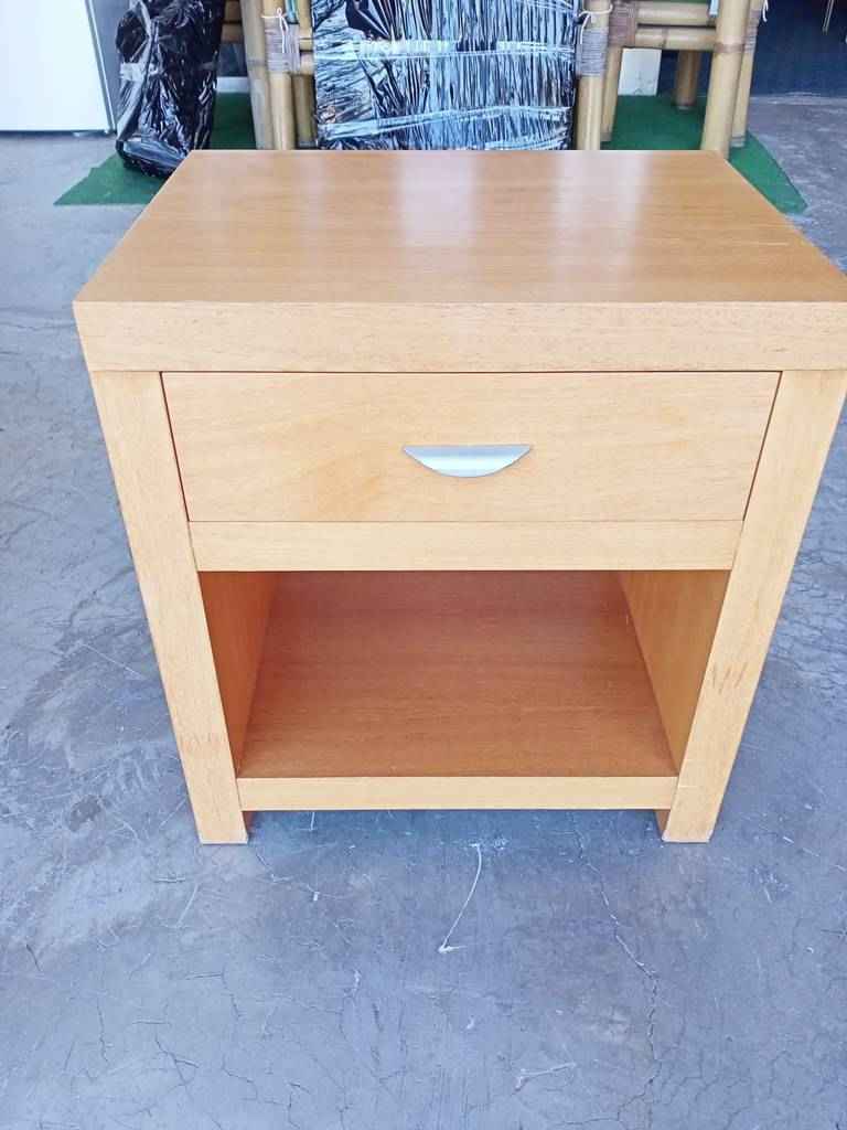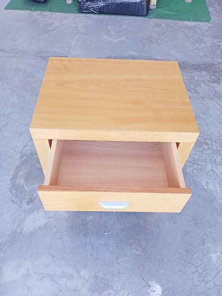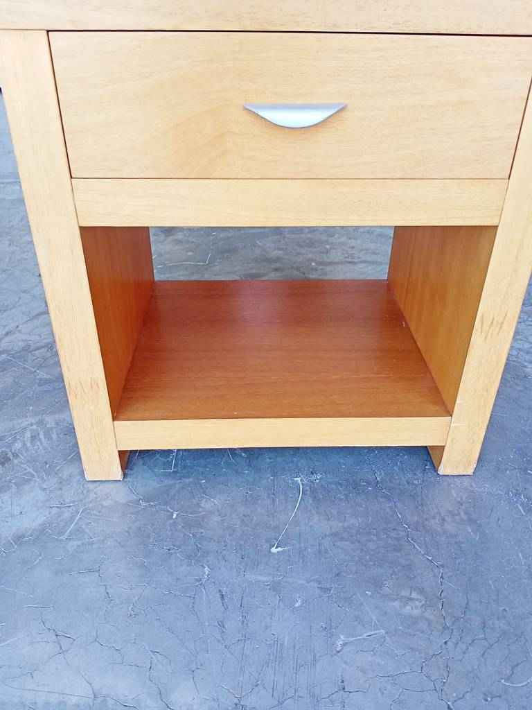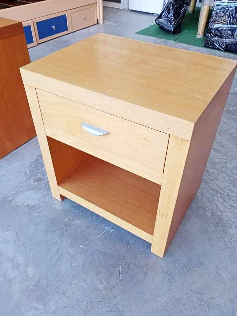 Mesita que ha sido realizada con madera de buena calidad y robusta. De color marrón claro esta mesita está compuesta por un cajón en la parte superior con un tirador metálico incorporado para abrirlo fácilmente y de un habitáculo abierto en la parte inferior. Es ideal para colocar en un dormitorio individual al lado de nuestra cama. Como podemos observar en las fotografías se encuentra en buen estado.