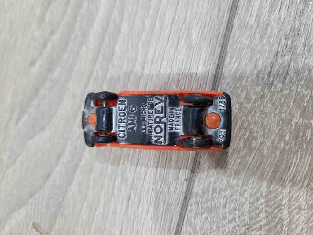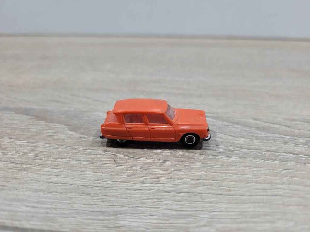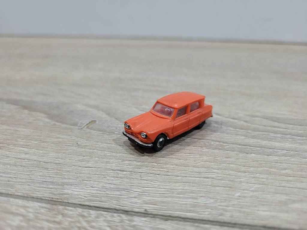 Figura de estilo vintage realizada en plástico. Se trata de una réplica del famoso coche de época de la marca Citroen modelo AMI 6. Esta pieza fue realizada en Francia y es un elemento ideal para amantes del automovilismo o coleccionistas. Quedaría ideal para exponer en un salón comedor o también para jugar con ella. Como podemos observar en las fotografías presenta desgaste.