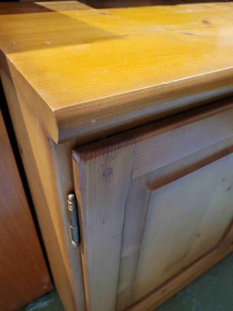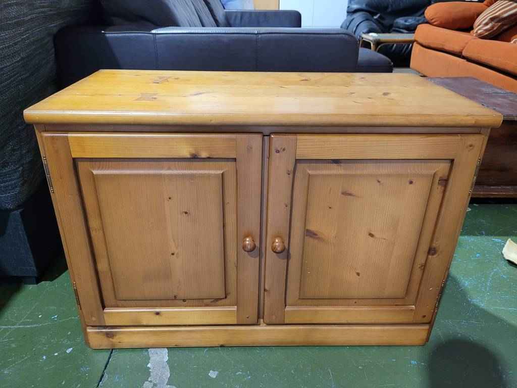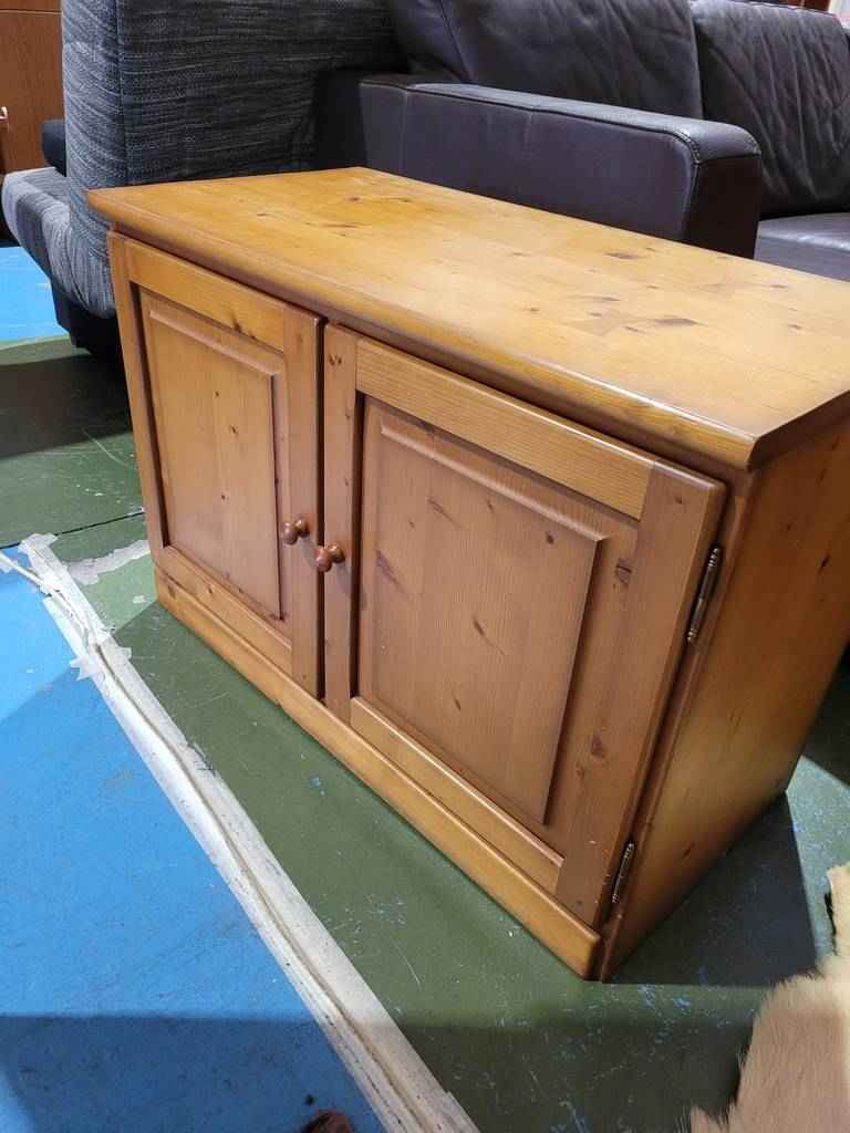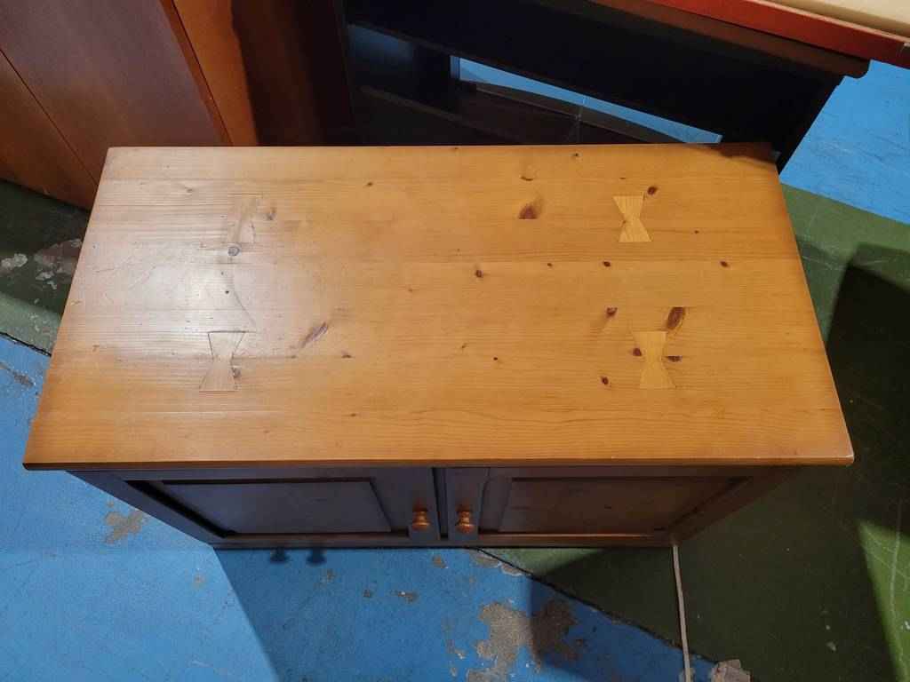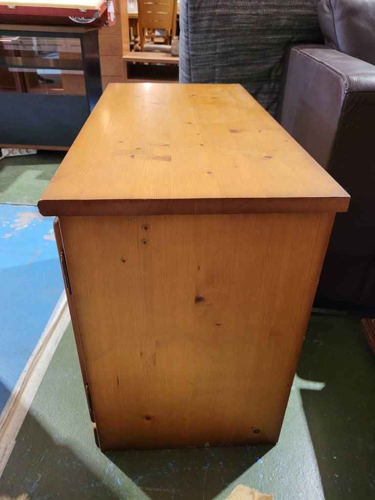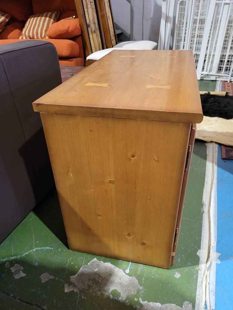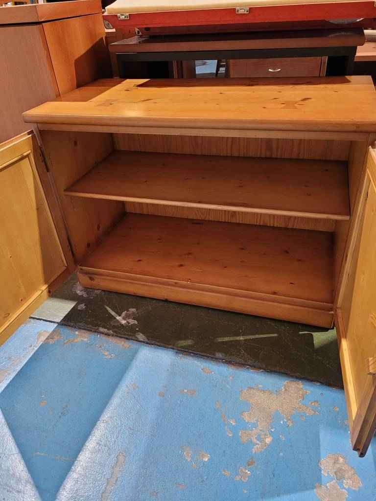 Mueble de estilo rústico. Está fabricado en madera de pino maciza de buena calidad y robusta. Se compone de dos puertas en la parte frontal que además incorporan tiradores para facilitar su apertura. En su interior dispone de dos habitáculos abiertos separados por una balda. Como podemos observar en las fotografías se encuentra en buen estado.