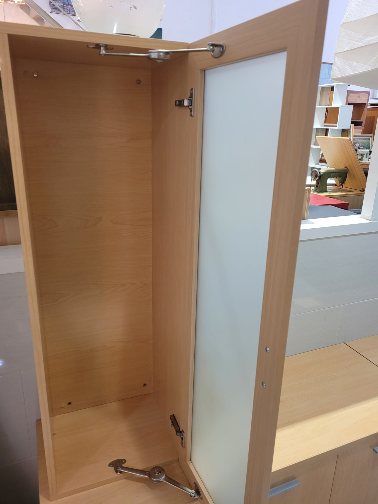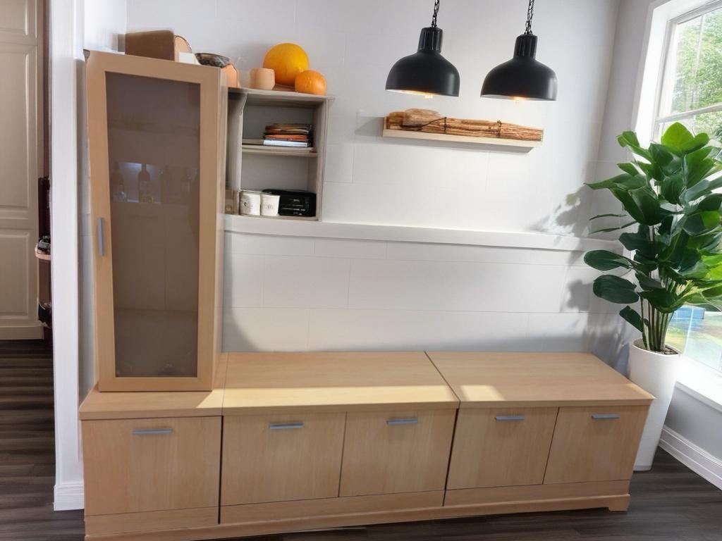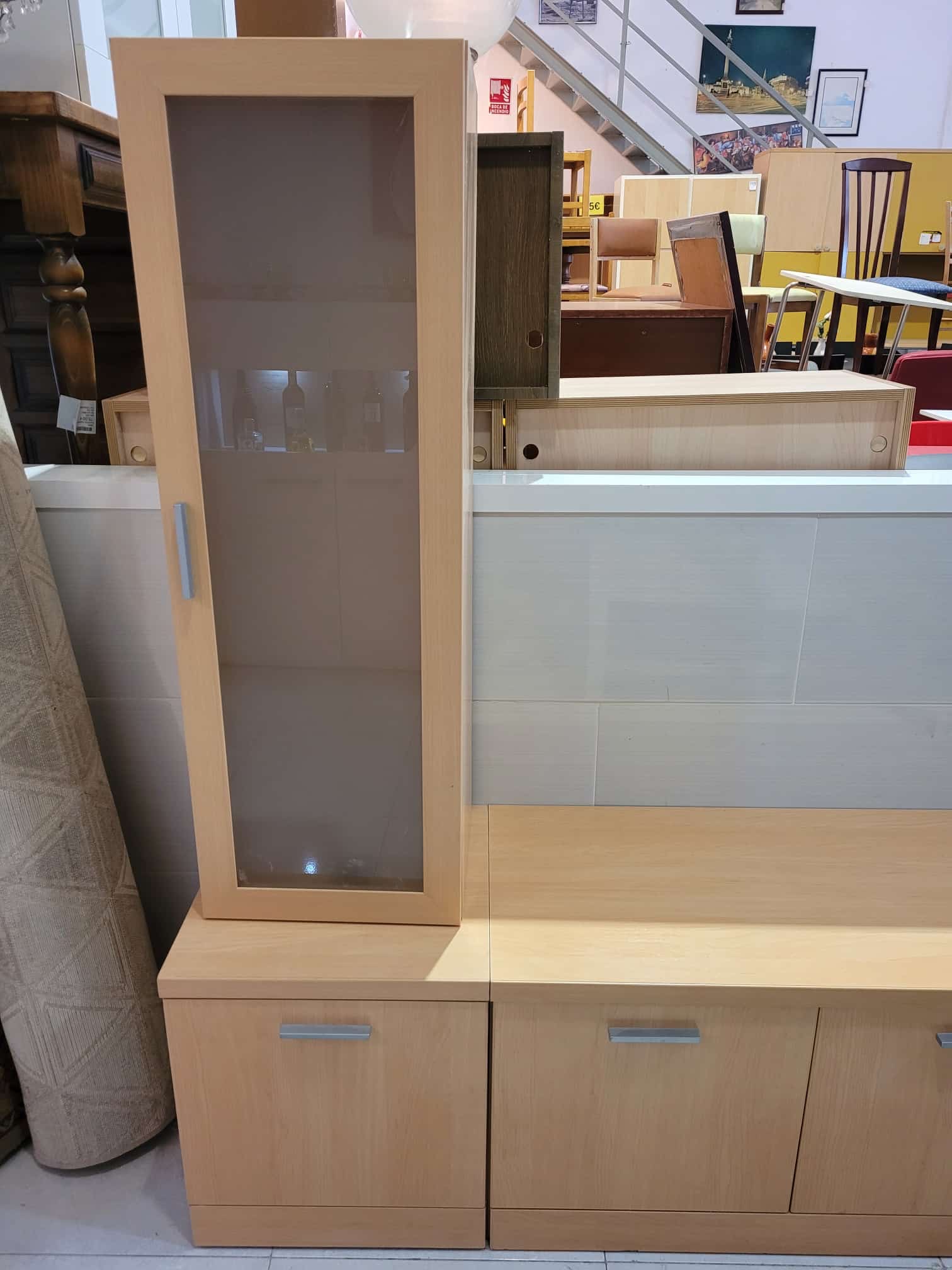 Ref. ✅ O8847  Este funcional y moderno mueble modular es perfecto para tu salón, comedor o incluso como solución de almacenamiento en la entrada. Su acabado en madera clara aporta luminosidad y una sensación de amplitud a cualquier espacio. Compuesto por módulos que puedes reorganizar según tus necesidades. Incluye una vitrina alta con puerta de cristal (ideal para vajilla o decoración) y una sección baja con múltiples compartimentos cerrados y estantes superiores. Ofrece gran capacidad para guardar mantas, libros, dispositivos electrónicos u otros enseres, manteniendo el orden en casa. Fabricado en material de madera resistente, en un tono claro natural (similar al roble claro), que es tendencia en decoración.
