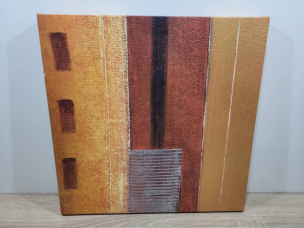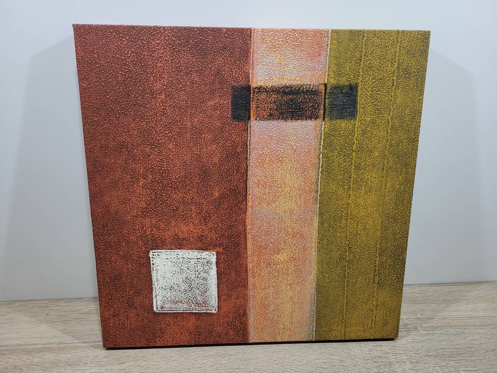 Ref. ✅ O9219  Estas cautivadoras piezas de arte abstracto contemporáneo permiten elevar la estética de tu hogar u oficina. La obra destaca por su sofisticada interacción de formas rectangulares y una rica textura que invita a la contemplación. Su paleta cromática, inspirada en elementos naturales como la arcilla y el musgo, crea una atmósfera de serenidad y equilibrio moderno. Perfecta como pieza central en salones, estudios o dormitorios de estilo minimalista, industrial o moderno.