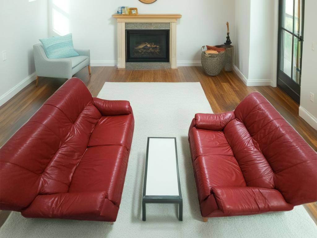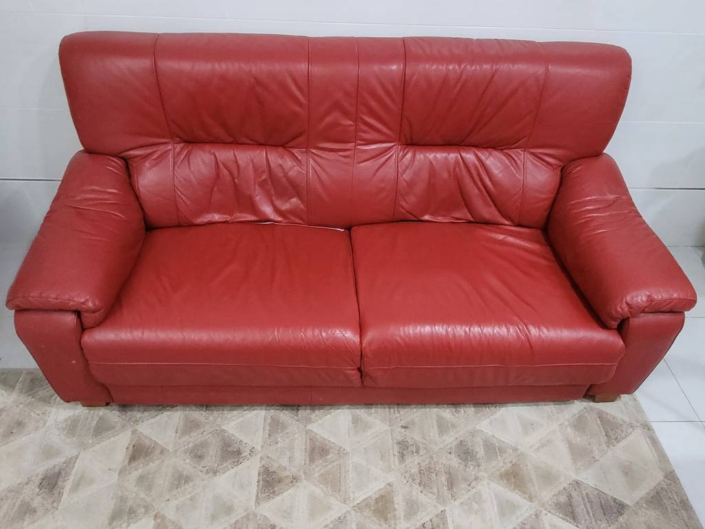 SET DE SOFÁS EN CUERO COLOR ROJO