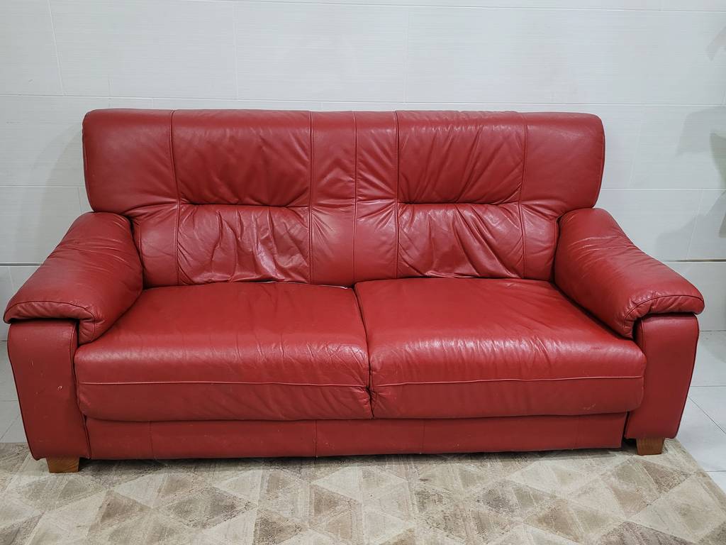 Ref. ✅ O9209 Este set de sofá de tres plazas destaca por su tapicería en cuero genuino de color rojo vibrante. Presenta un diseño moderno con asientos amplios, mullidos y un respaldo ergonómico que garantiza el máximo confort. Su estructura robusta asegura durabilidad y un soporte lumbar excepcional. A juego con la pieza principal, este sofá de dos plazas ofrece la misma elegancia y calidad en piel roja. Es la pieza ideal para optimizar espacios sin renunciar al estilo clásico y sofisticado que aporta el cuero. Se encuentra en excelente estado de conservación.