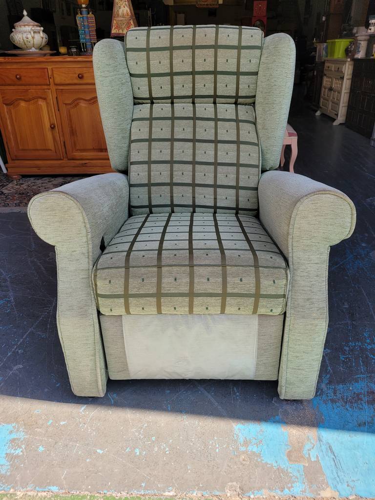 Sillón de relax en color verde con un asiento y respaldo muy acolchado y cómodo, así como dos reposabrazos en los laterales para un mayor confort. La parte inferior se extiende pudiendo tener nuestras piernas totalmente estiradas. Se trata de un sillón ideal para estar muy relajado y cómodo durante largas horas. Es ideal para colocar en un salón comedor frente al televisor. Como podemos observar en las fotografías se encuentra en buenas condiciones.