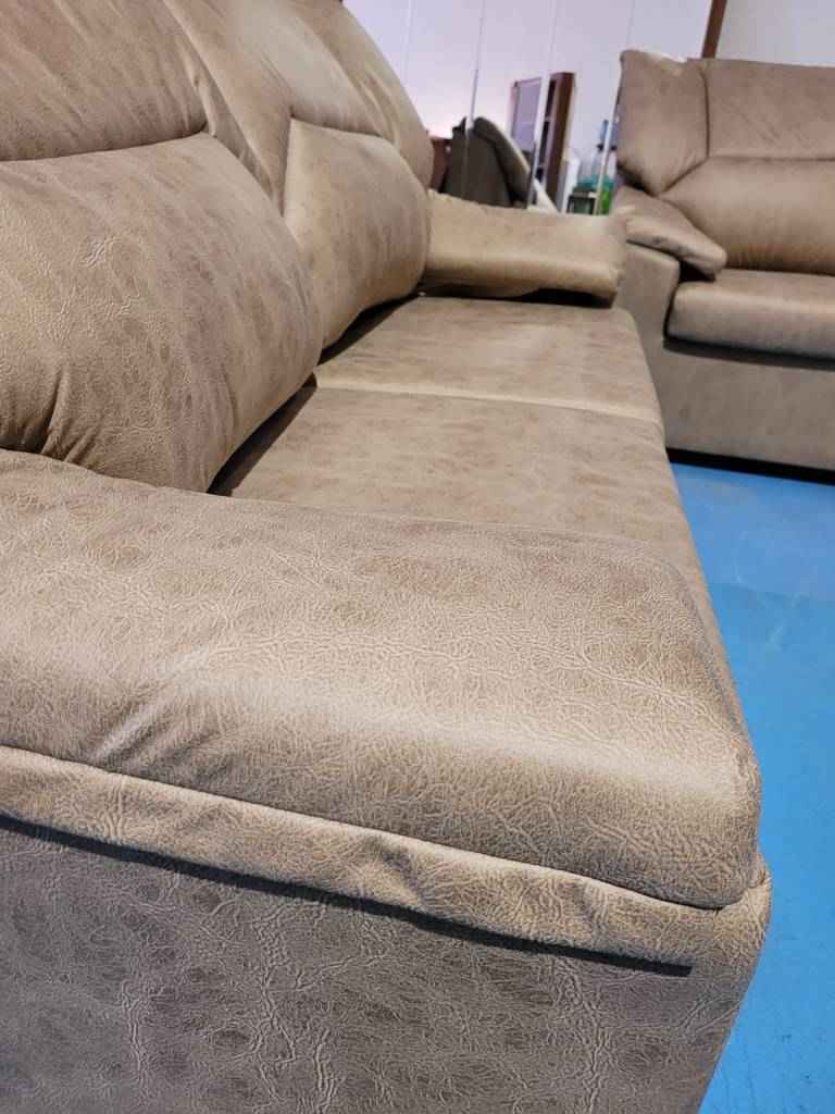 Sofá de 3 plazas nuevo a estrenar hecho de tela suave y agradable al tacto color marrón. Se trata del modelo Niza el cual tiene un diseño muy moderno, original y llamativo. Tiene los asientos y respaldos acolchados, así como reposabrazos en los laterales que lo hacen aún más cómodo. Es ideal para darle un toque moderno y original al salón de casa y también perfecto para sentarnos o tumbarnos en él a ver una buena película o descansar.