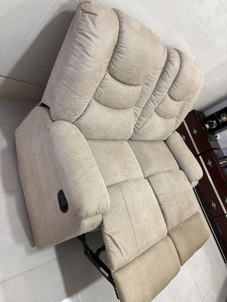 Ref. ✅O8700 Este es un sofá reclinable de dos plazas, tapizado con un material texturizado que simula la piel, ofreciendo un aspecto elegante y duradero. Cuenta con dos asientos reclinables independientes, lo que permite a cada persona ajustar su posición para un máximo confort. El acolchado es generoso en los respaldos, los asientos y los reposabrazos, proporcionando un excelente soporte y comodidad. Es perfecto para salas de estar o cualquier espacio de descanso.