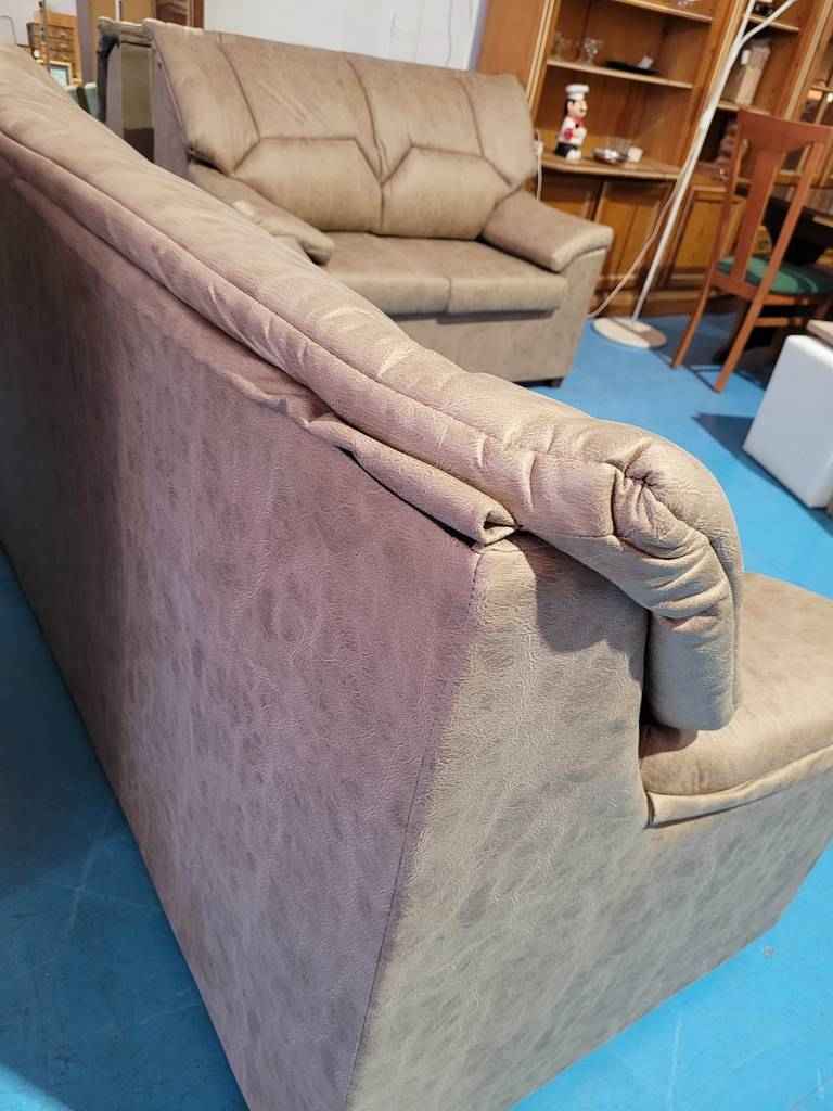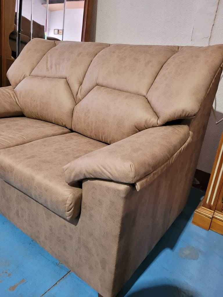 Pareja de sofás de 3 y 2 plazas nuevos a estrenar hechos de tela suave y agradable al tacto color marrón. Se trata del modelo Niza el cual tiene un diseño muy moderno, original y llamativo. Ambos tienen los asientos y respaldos acolchados, así como reposabrazos en los laterales que los hacen aún más cómodos. Son ideales para darle un toque moderno y original al salón de casa y también perfectos para sentarnos o tumbarnos en ellos a ver una buena película o descansar.