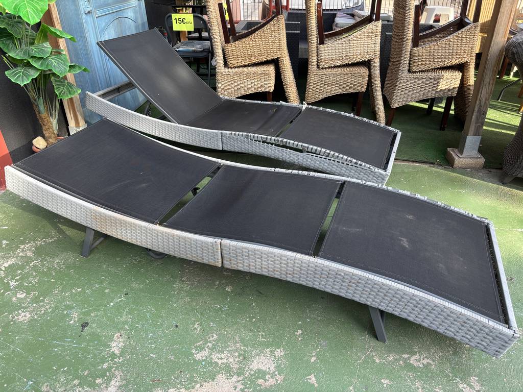 Ref. ✅ O8737 Este es un par de tumbonas de ratán sintético, ideales para tomar el sol y relajarse en el jardín, la terraza o junto a la piscina. Su diseño moderno y elegante, con una estructura de ratán sintético de color gris, se adapta fácilmente a cualquier decoración exterior. La superficie reclinable es de tela negra, resistente y transpirable, que ofrece comodidad y durabilidad.